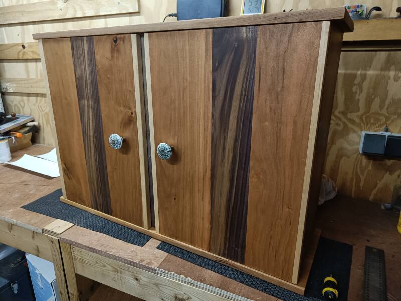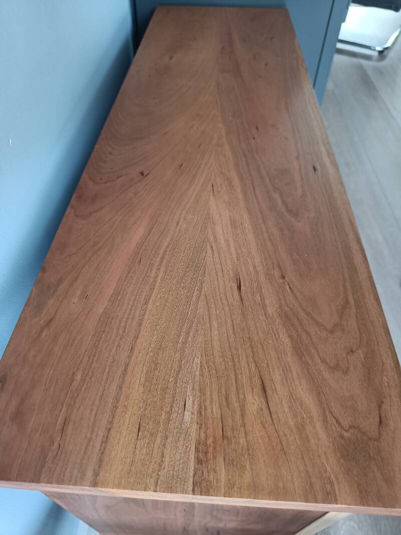 Dit prachtige kastje heb ik gemaakt voor mijn ouders. Het is gemaakt van kersenhout, met wat walnoot en esdoorn als contrast. Ik heb een aantal ontwerpkeuzes gemaakt die dit object anders maken: